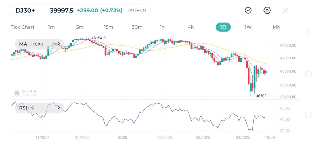 Dow Jones fell again below the 40,000 level yesterday after Powell warns that tariffs might make it more difficult for the Fed to maintain inflation under control while ensuring stable employment numbers.